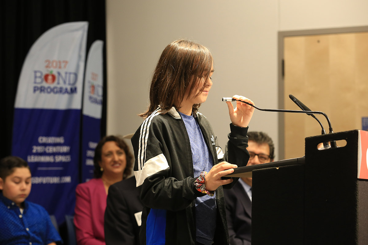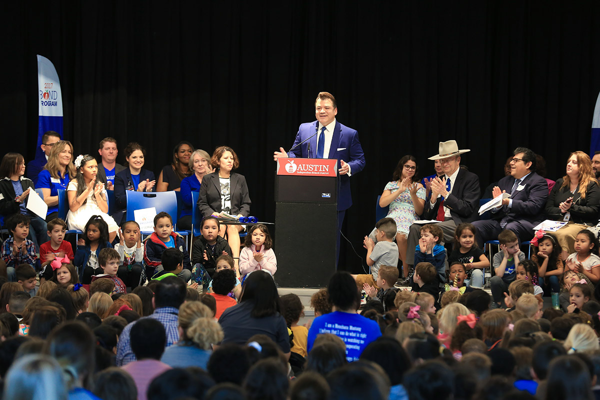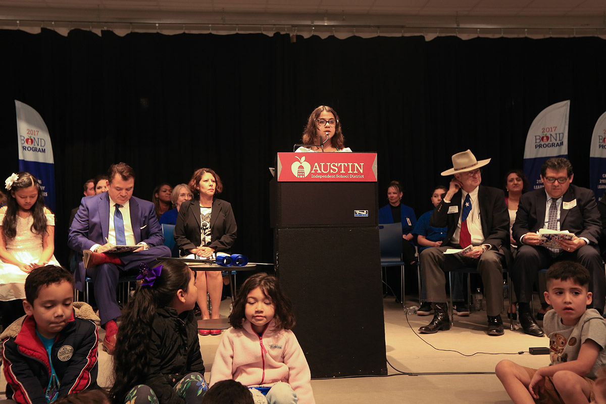 The school band began to play as elementary students sitting in the gymnasium came together to sing Menchaca Elementary School’s song. Children belted out the lyrics excited to start school in their new learning space. This is the fifth Menchaca elementary building in the last 137 years. The scene happened January 10 at the grand opening of the modernized Menchaca.