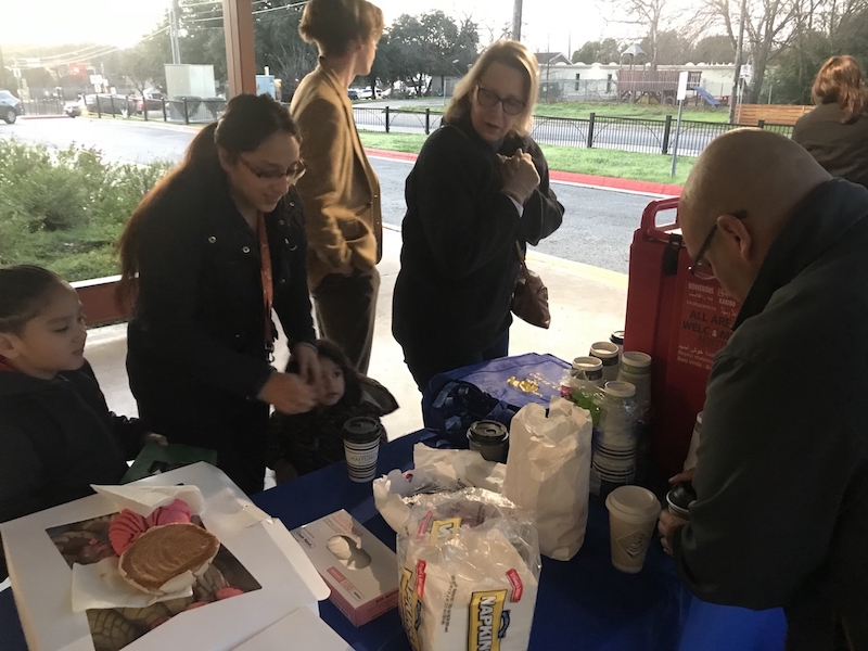 Love was in the air at St. Elmo Elementary on Thursday morning as faculty and staff handed out curbside coffee and sweetbread to families dropping their students off at school.