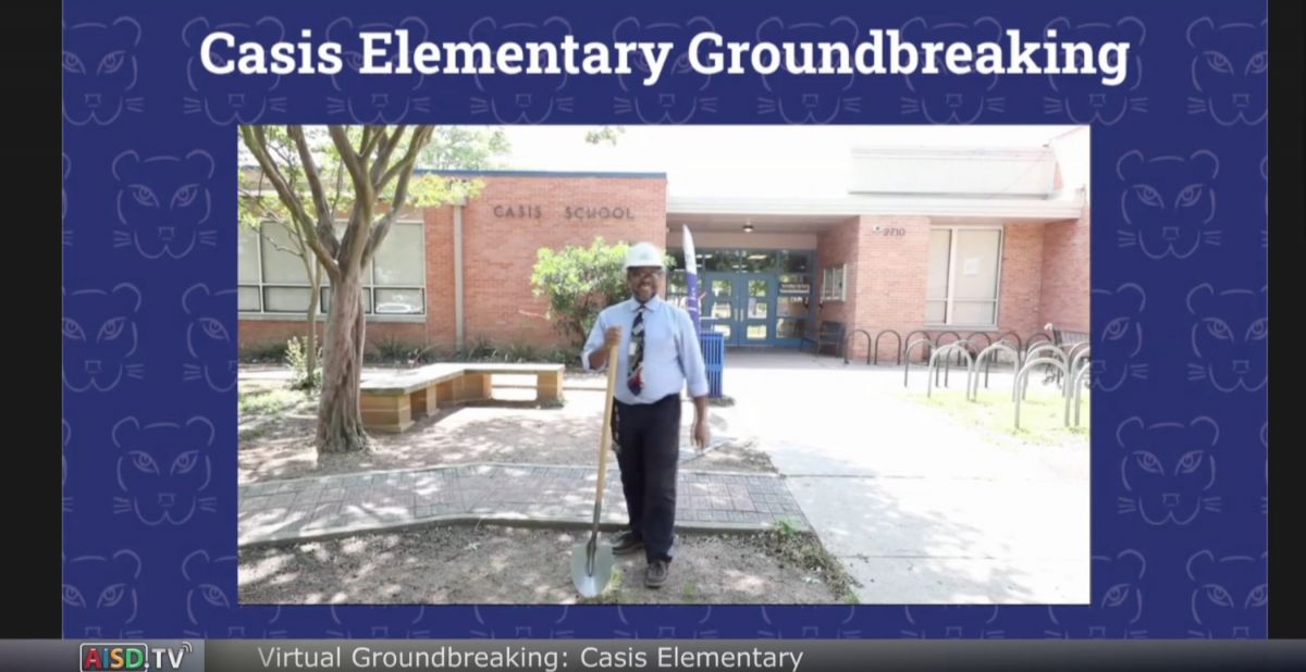 The virtual groundbreaking was broadcast on AISD.TV and Facebook Live, where students, families and staff were able to view the virtual ceremony from home.