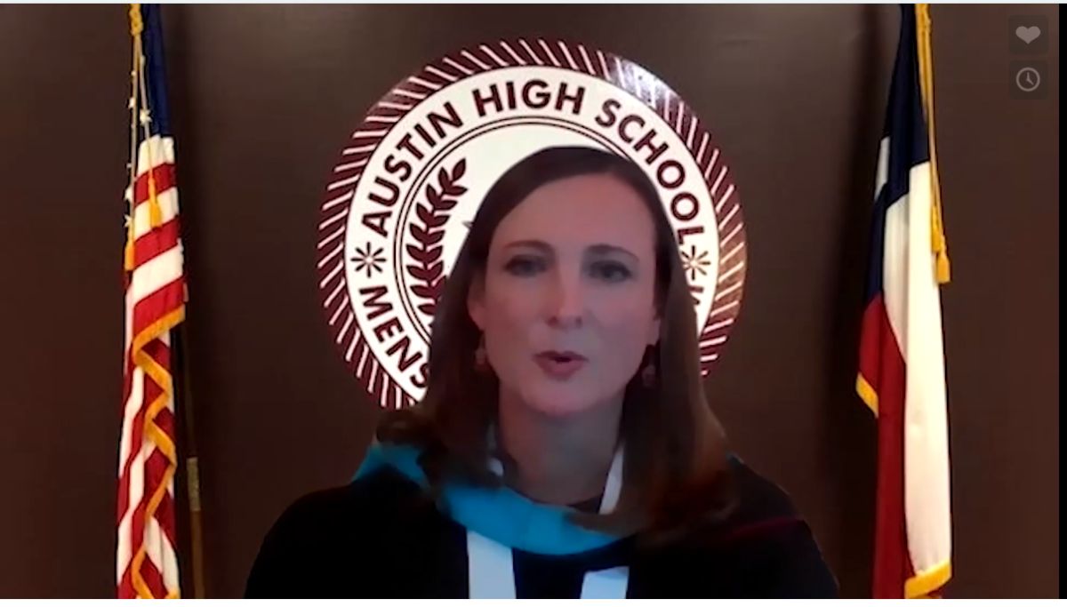 Austin High School had two valedictorians with matching GPAs. Valedictorian Genevieve Clemons highlighted her experiences and the impact of her teachers and the Austin High School community.