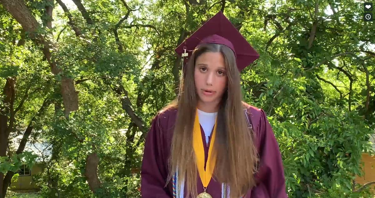 Next, Salutatorian Stephanie Von Rosenberg spoke about how the class of 2020 may feel some disappointment because of missed shared experiences, but that their unique situation can make them appreciate little moments in their lives.