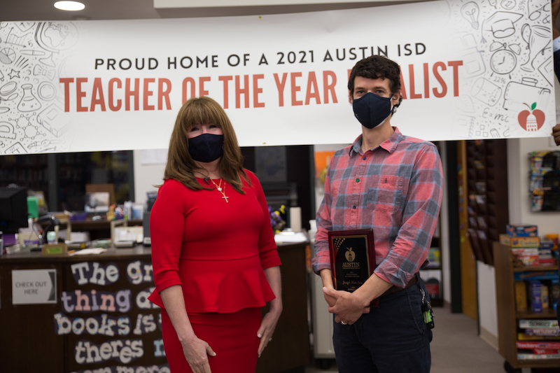In a series of surprise visits filled with congratulatory elbow bumps, sheet cake, and plaques, Superintendent Stephanie Elizalde visited four Austin schools on Wednesday to celebrate four teachers who were selected as Austin ISD’s 2021 Teacher of the Year finalists.