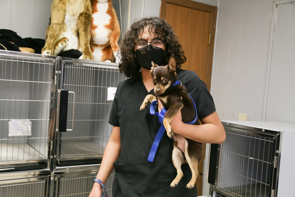 The Akins veterinary clinic is an on-campus teaching facility focused on student learning through hands-on experience. Students are high school seniors working toward becoming state-certified veterinary assistants.