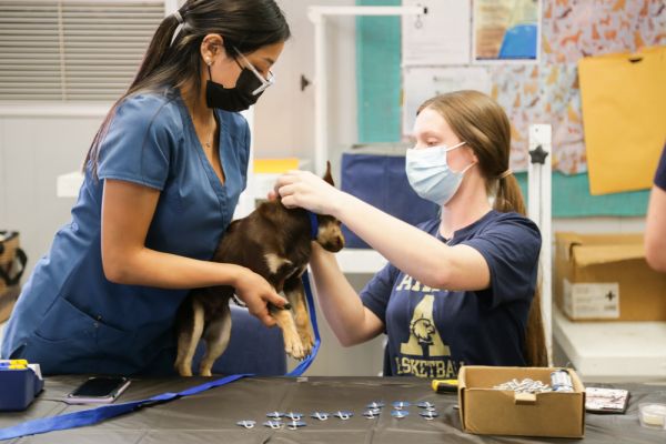 The student-run clinic administered dog and cat vaccines for DHLP, parvo, rabies, bordetella, PRCC and feline leukemia. All clinic services are supervised by the instructor and industry professionals.