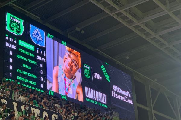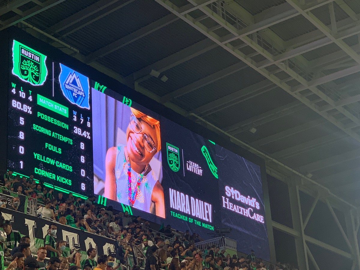 Paredes Middle School teacher Kiara Dailey scored the Teacher of the Match recognition at an Austin FC match Wednesday night.