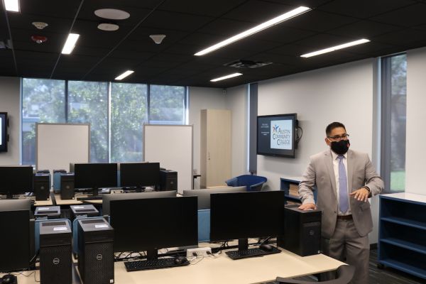 The center includes a working data center, state-of-the-art computer labs, virtual reality and esports areas to support P-TECH –– a program that provides students with the education and skills needed to pursue a career in technology. Through P-TECH, students can take free college classes and earn an associate’s degree in applied science with a specialization in cybersecurity from Austin Community College.