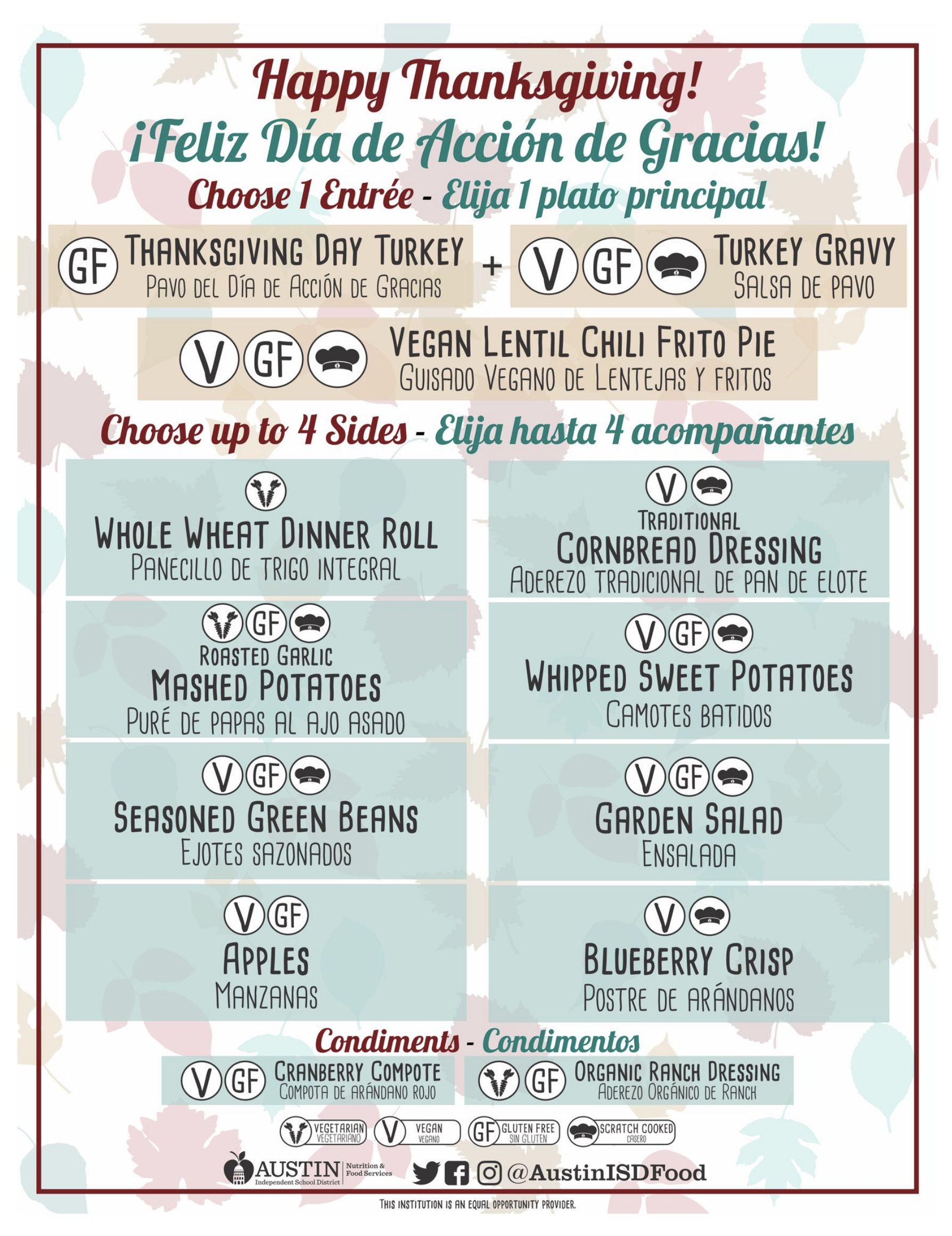 The district welcomes all families to join their children at school Nov. 15. Aside from school-specific thank you events, students and their families can share a meal from this year's Thanksgiving lunch menus at school cafeterias.