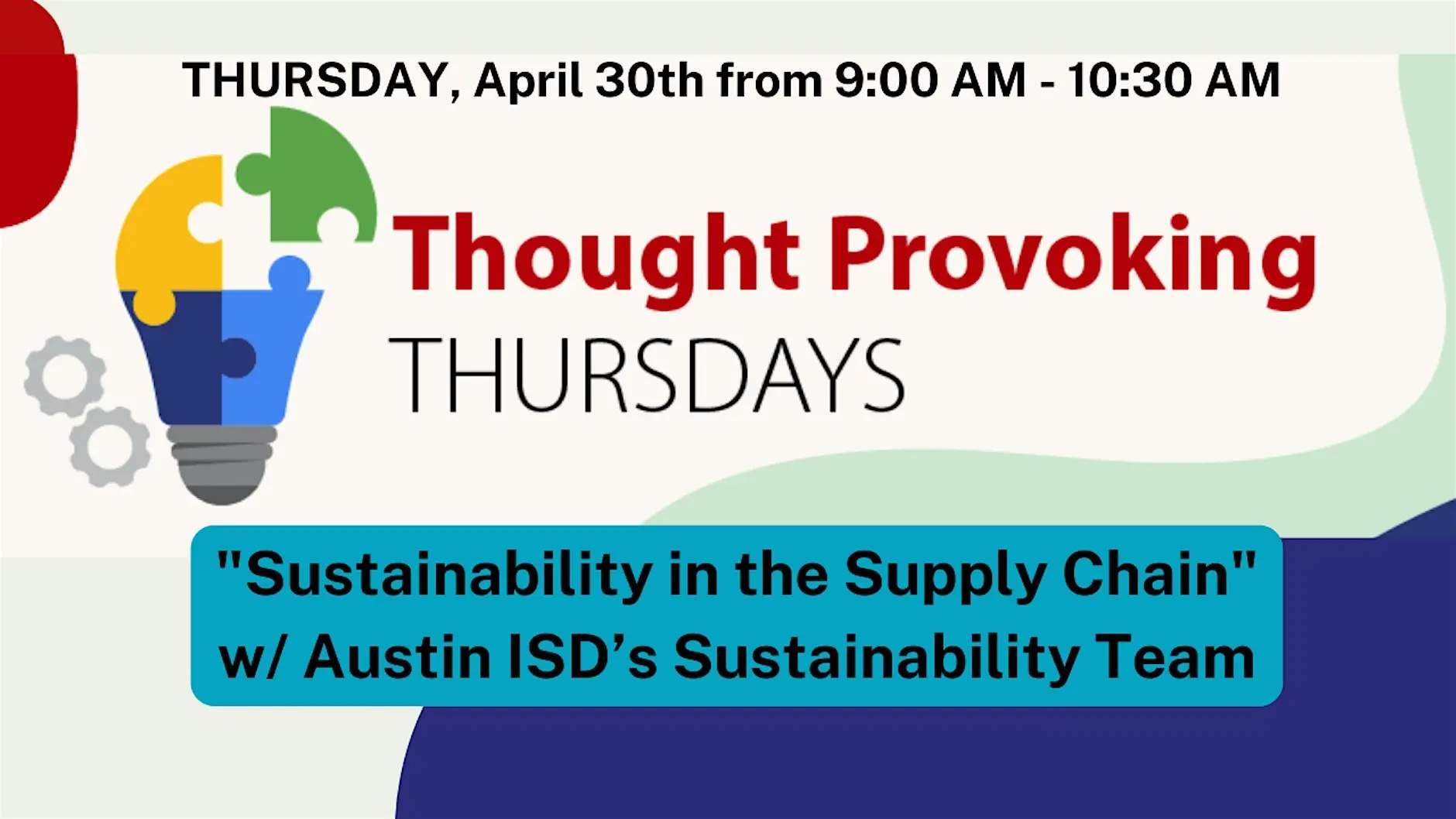 Join AISD’s Economic Opportunity Office next Thought-Provoking Thursday Webinar Series – "Sustainability in the Supply Chain"