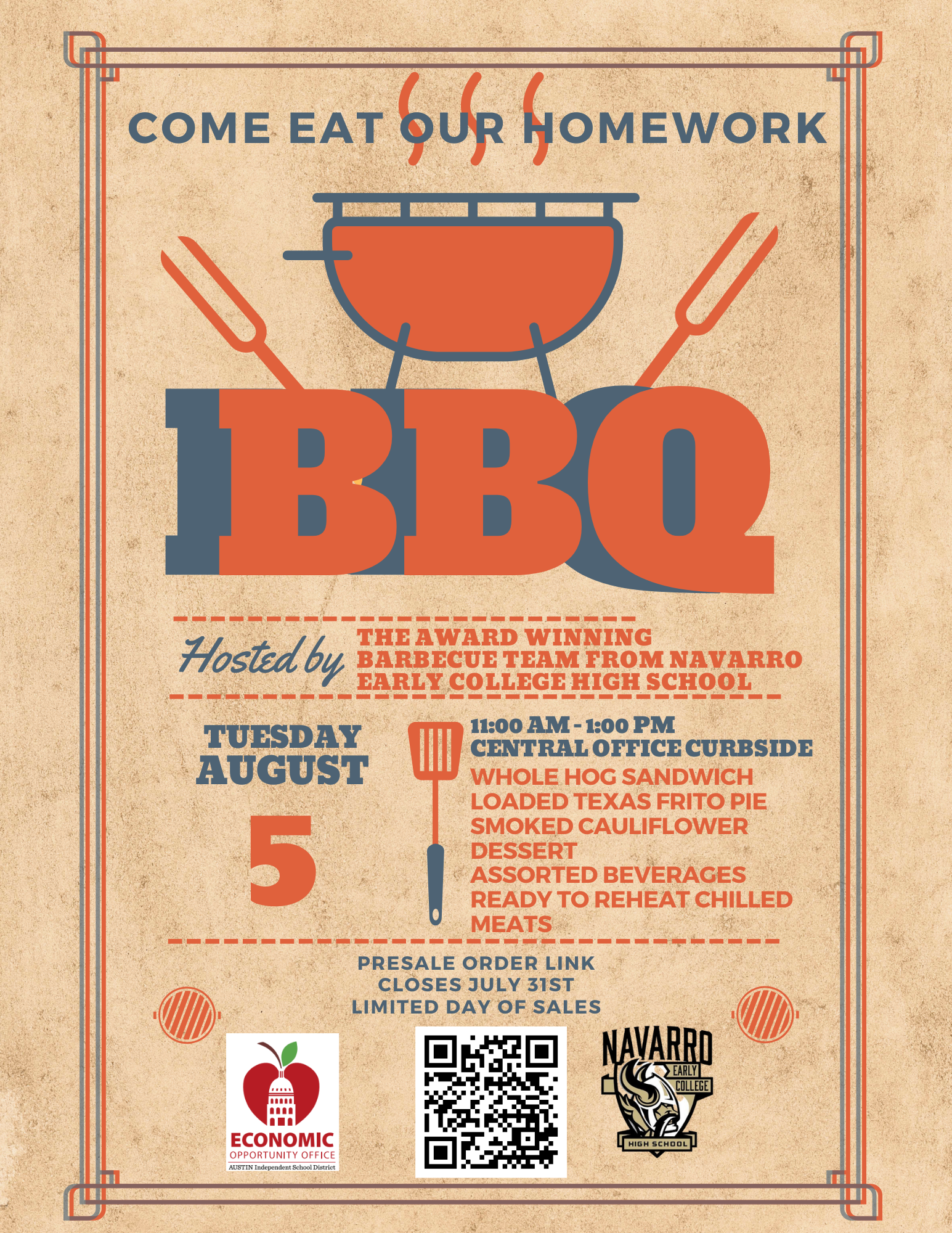 Navarro ECHS Award Winning BBQ! The BBQ Team was awarded 4th place out of 58 teams in the 2023 Texas High School BBQ Competition. This win secured a spot at the National contest in June at Kalahari Resort.