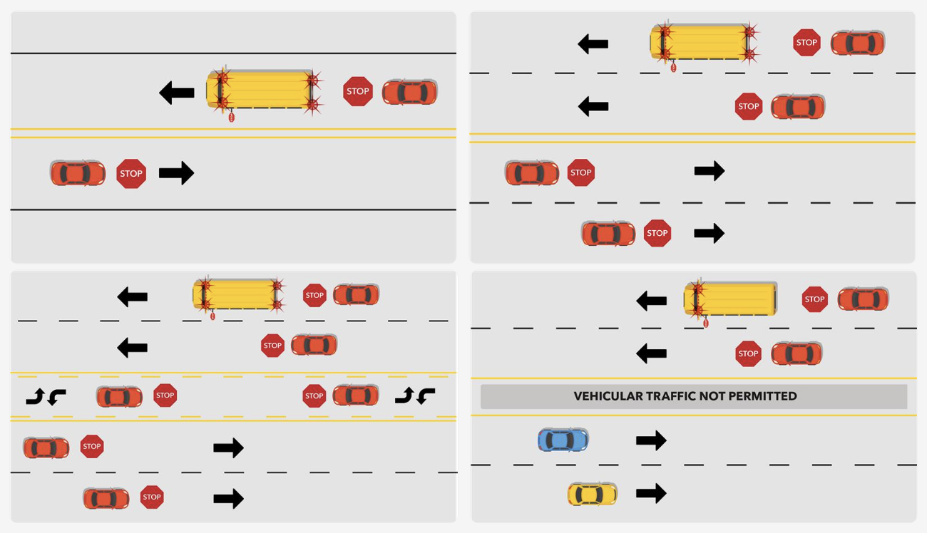 Violations are automatically detected, allowing the bus driver to focus on driving. Photo-enforcement systems allow for continuous law enforcement while police officials focus on other high-priority needs. When a school bus stops and alternating red flashing lights are active, drivers must stop.